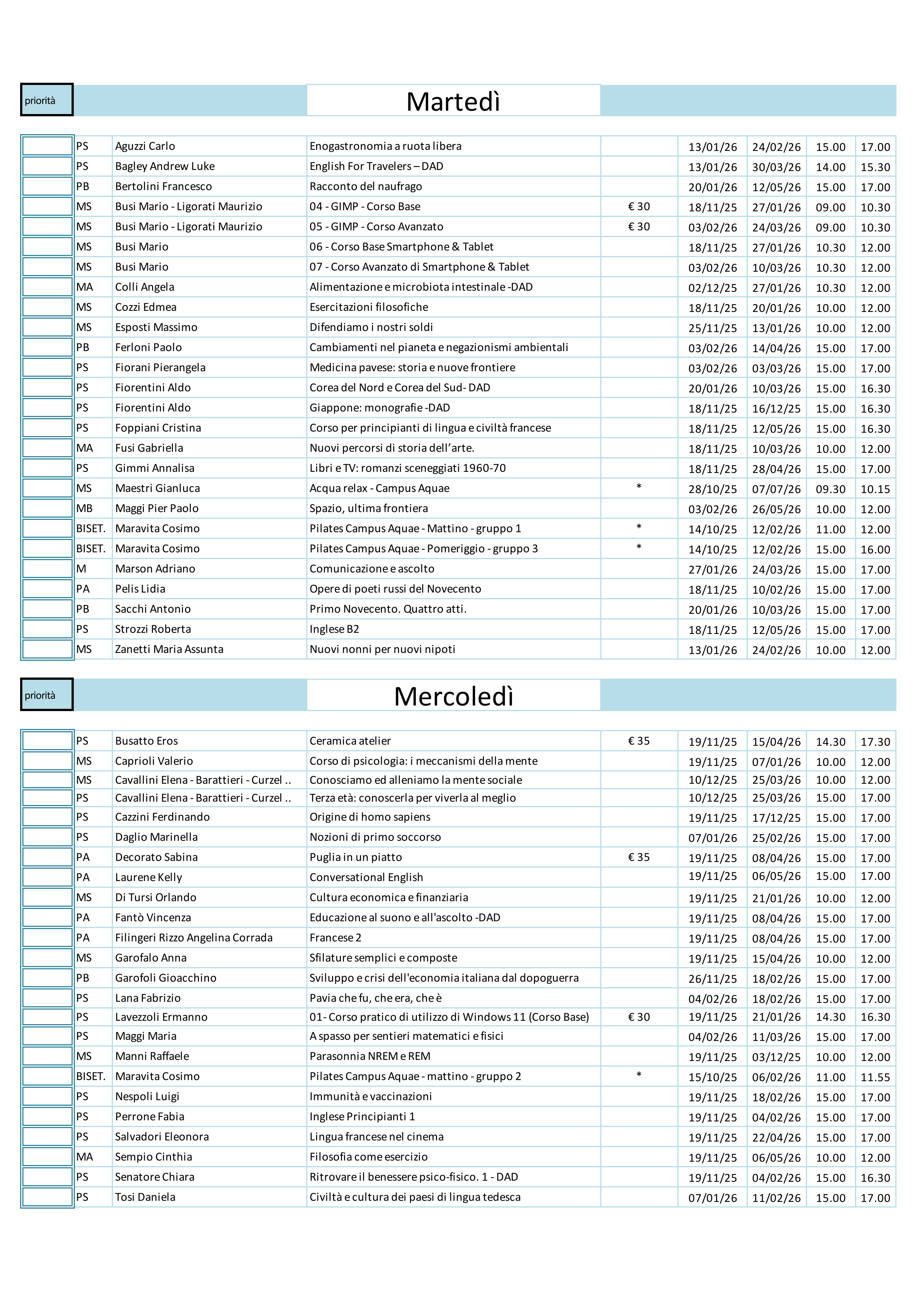 Corsi e laboratori